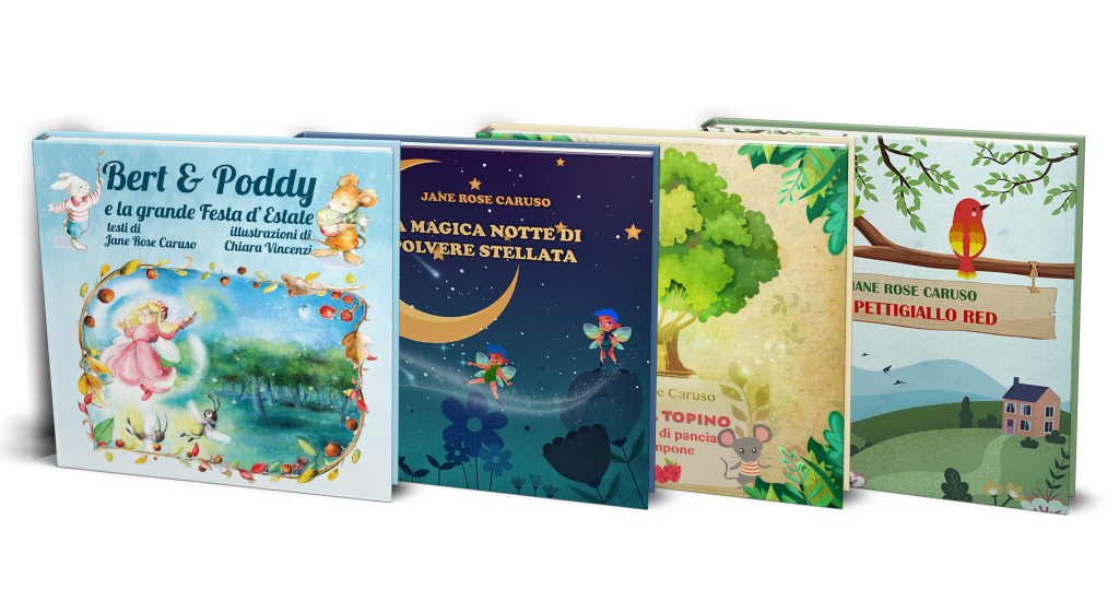 Le ultime due sono curate da me e illustrate da una bravissima artista, Chiara Vincenzi. Sono in cover rigida di 85 pagine, con giochi finali, foglie per disegnare e due illustrativi. E’ stato utilizzato sempre un font ad alta leggibilità.